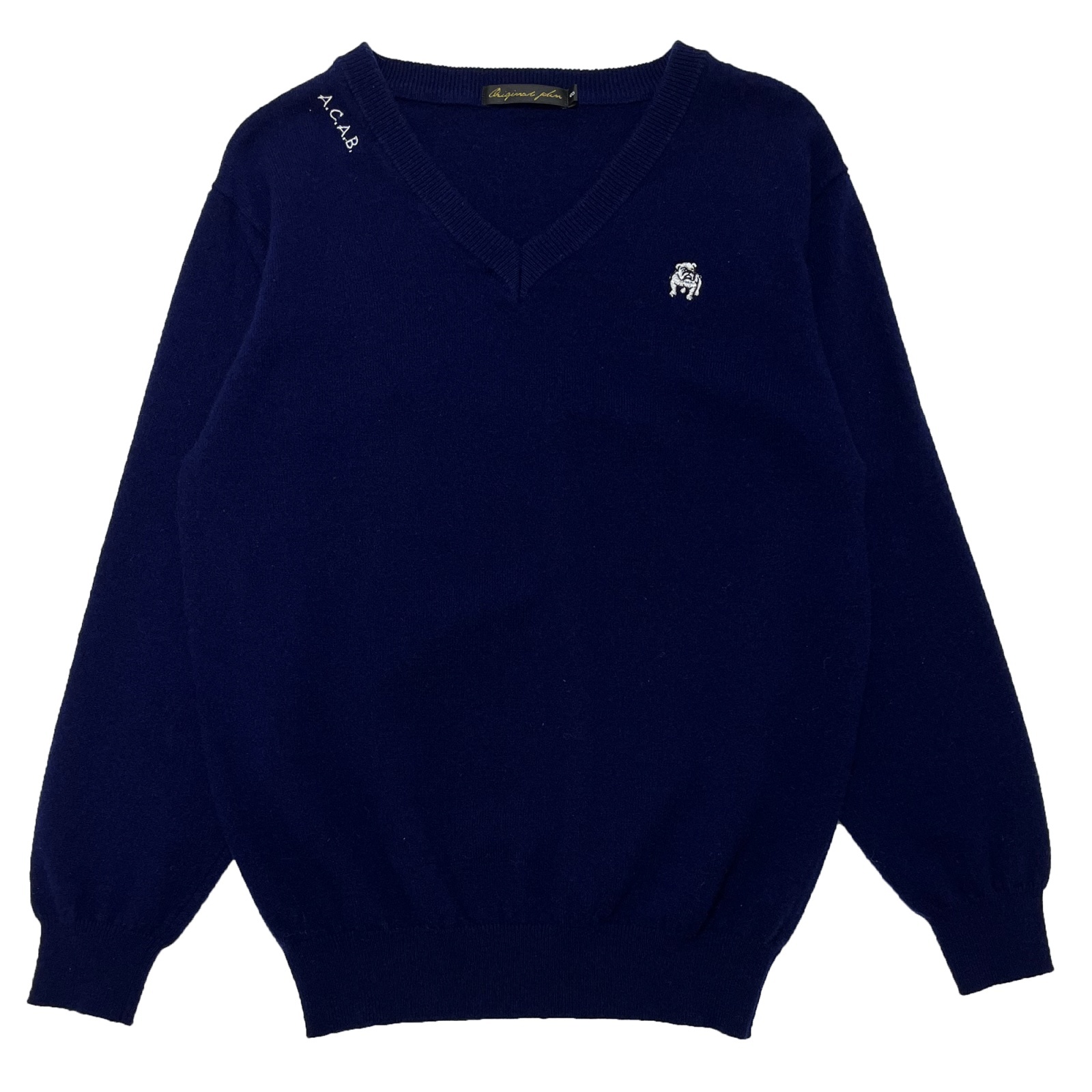 シンプルなデザインで、首横に「A.C.A.B.」刺繍、胸にブルドッグ刺繍