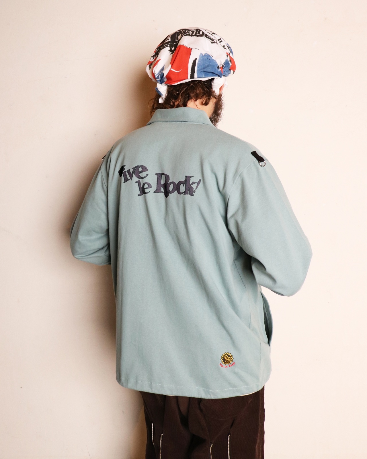 胸に"SKULL"刺繍、背面に"VIVE LE ROCK!"プリントと刺繍